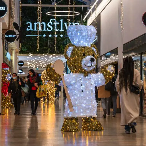 Wij beschikken over het meest gevarieerde kerstassortiment van Europa en produceren veel ornamenten volledig op maat voor winkelcentra. Hierdoor ben je verzekerd van een unieke uitstraling die perfect past bij de architectuur, routing en bezoekersstromen van jouw locatie.
