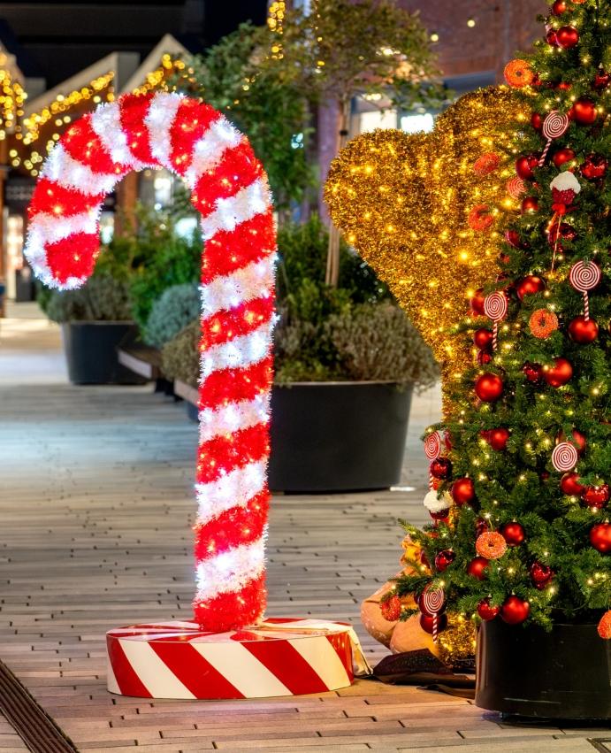 Between Amsterdam and Haarlem, on the iconic site of SugarCity, Amsterdam The Style Outlets transforms into a luminous Christmas paradise. Each shop front is illuminated with low-energy LED garlands, while majestic arches and sumptuous red and gold gifts decorate the pedestrian streets.