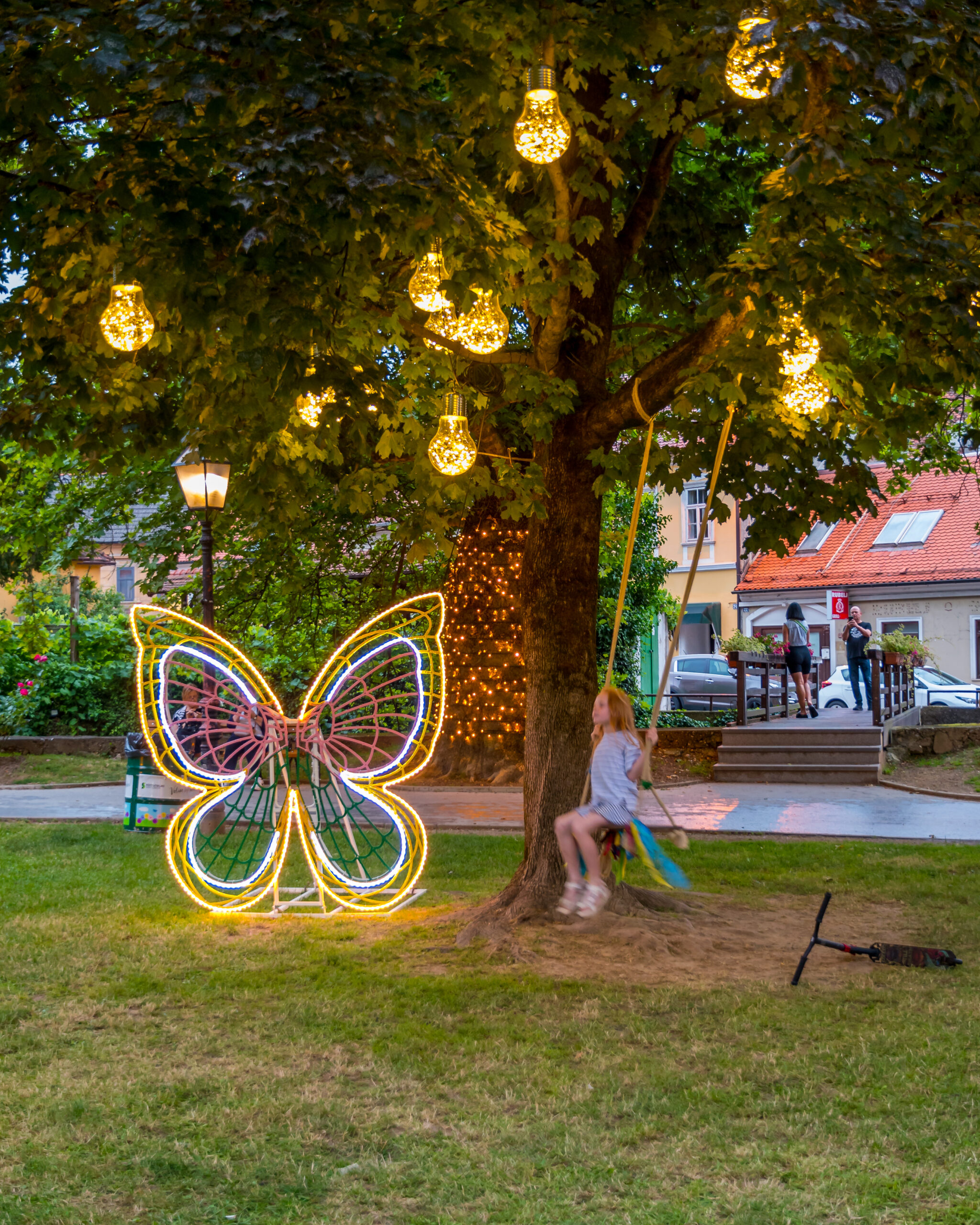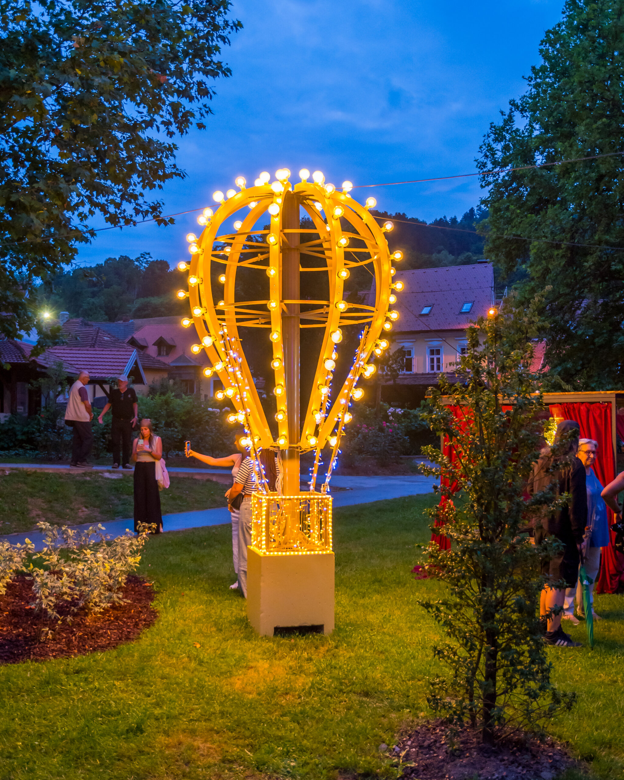 Every summer, the city of Samobor is adorned with magnificent decorations in its large park, where majestic trees welcome our luminous garlands and our iconic Nostalgia bulbs. On the floor, Bioprint decorations invite visitors to capture magical moments in front of colorful, butterfly-shaped selfie spots, under plant arches or near illuminated hot air balloons. Summer evenings have a different flavor in Croatia thanks to the event Summer in Samobor with our festive and radiant decorations.