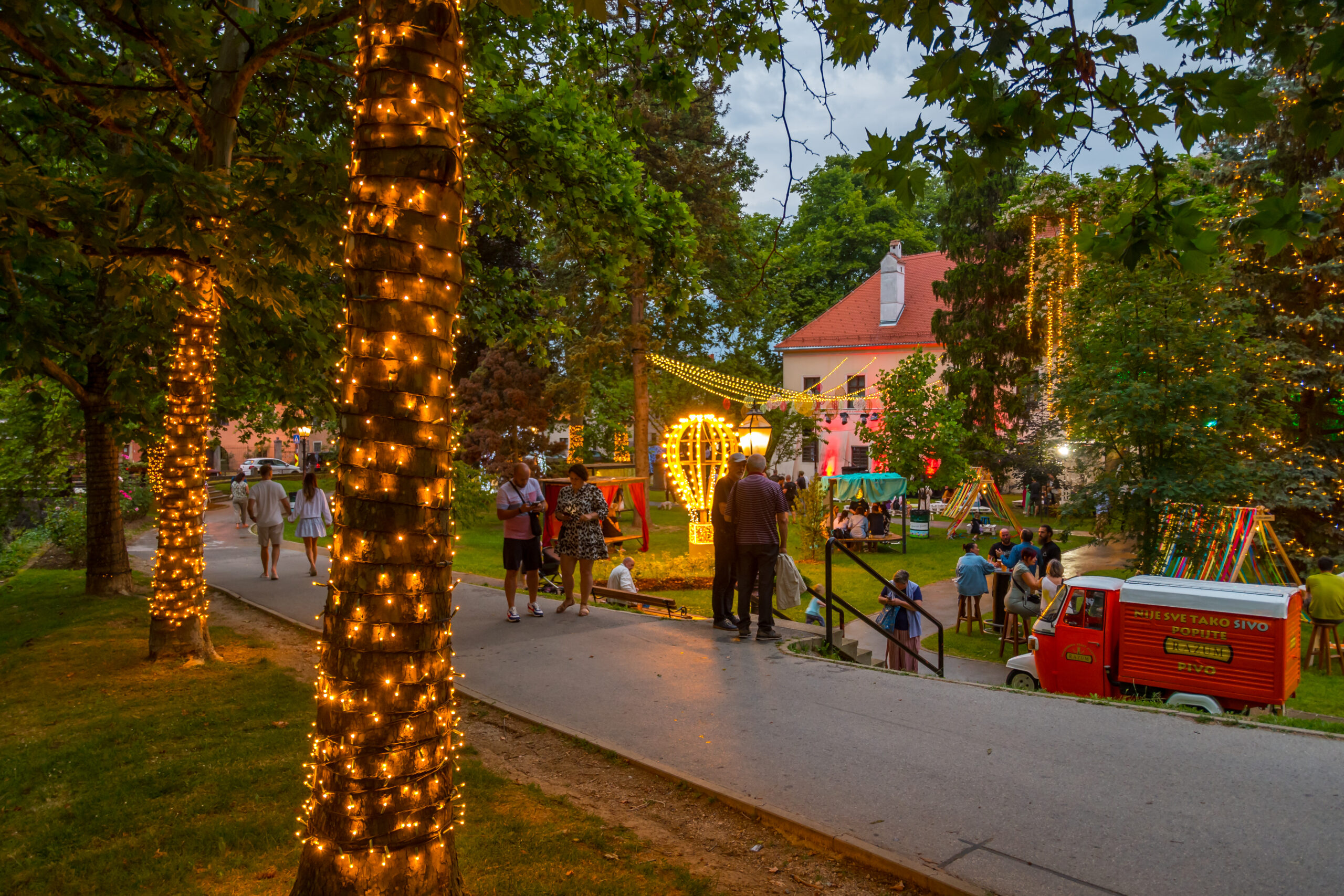 Summer in Samobor is a festive event that takes place every summer in a beautiful park. Beautiful decorations in Bioprint, biodegradable and recyclable material, are installed to create festive and family atmospheres. Illuminated garlands, colorful selfie spots in the shape of butterflies and illuminated hot air balloons take their place and amaze passers-by.
