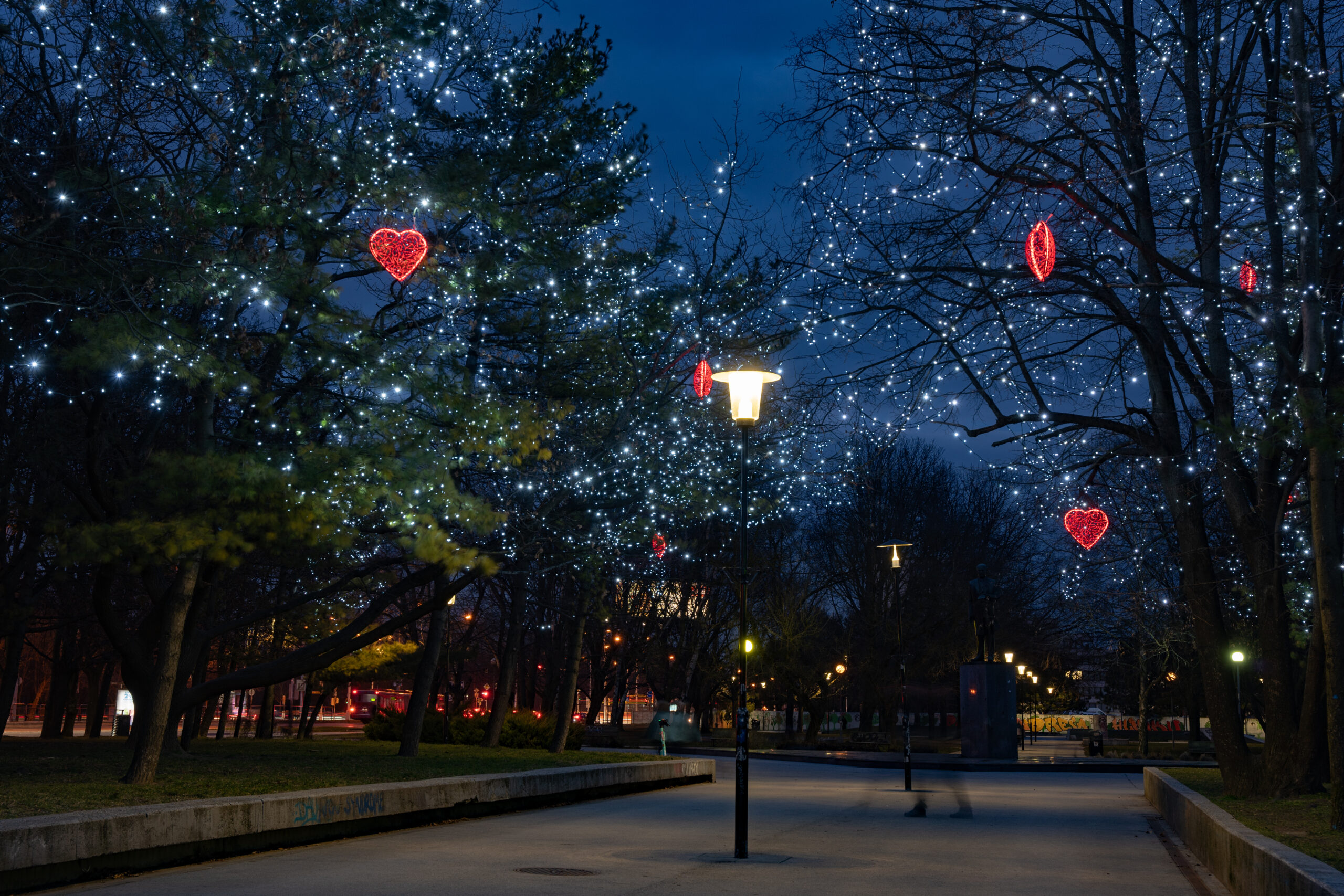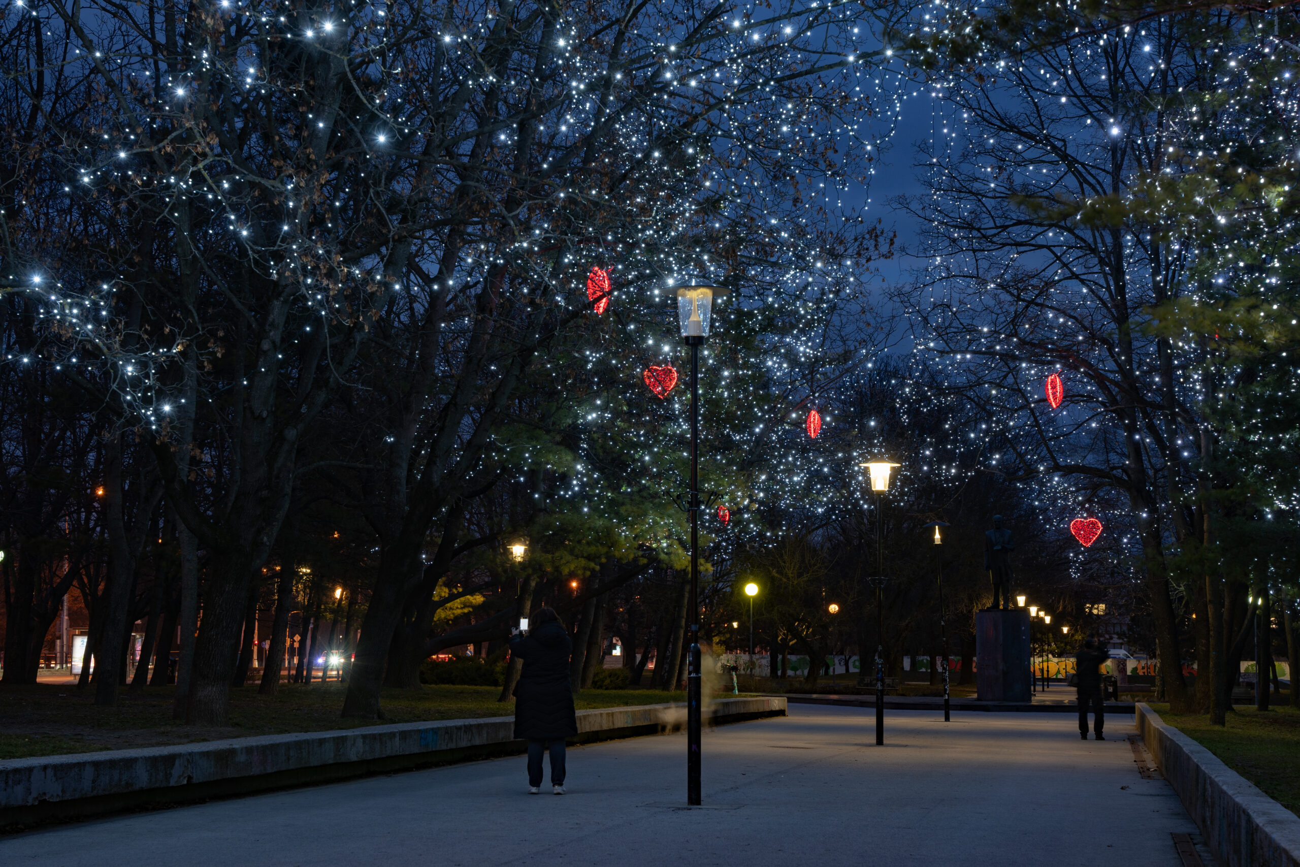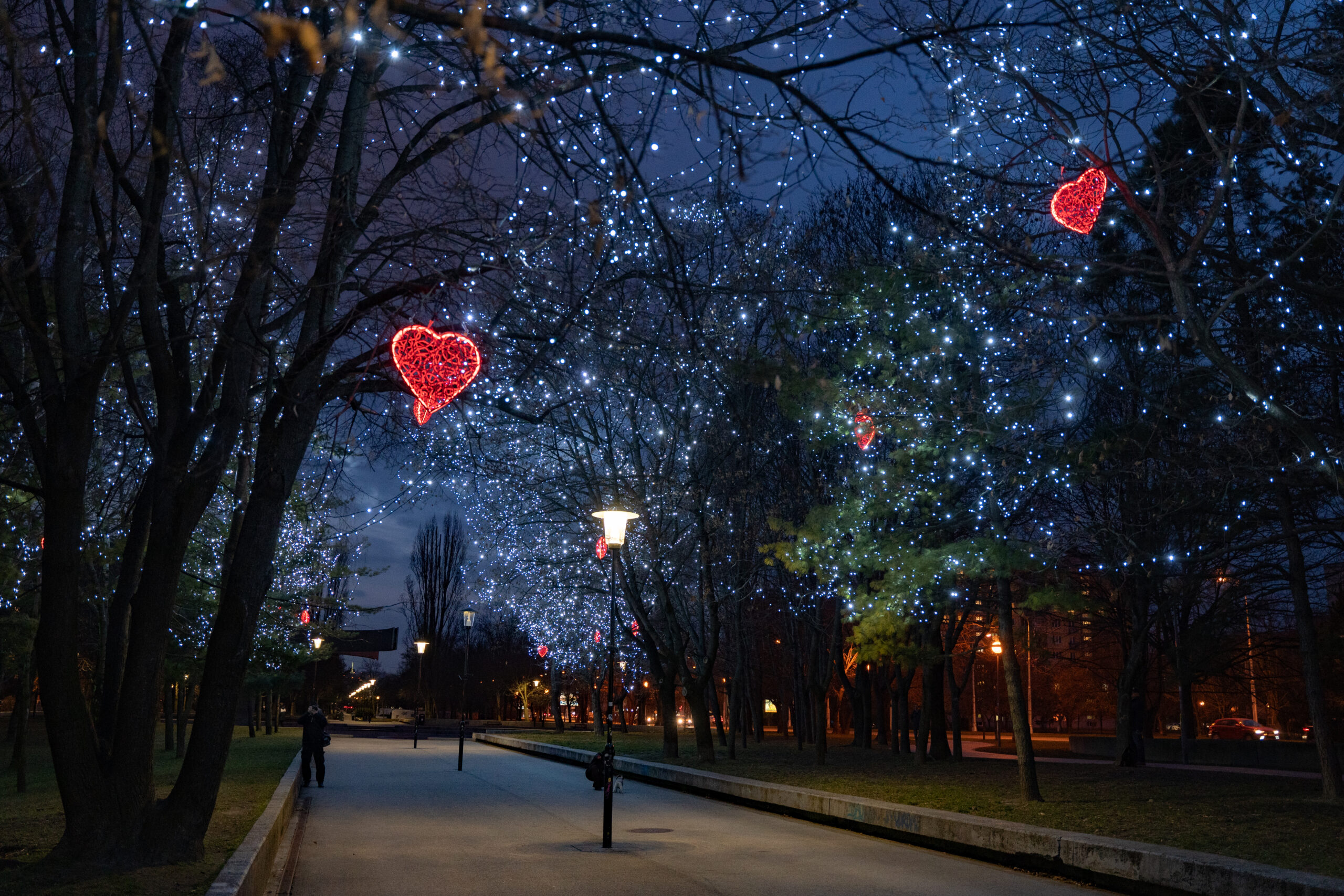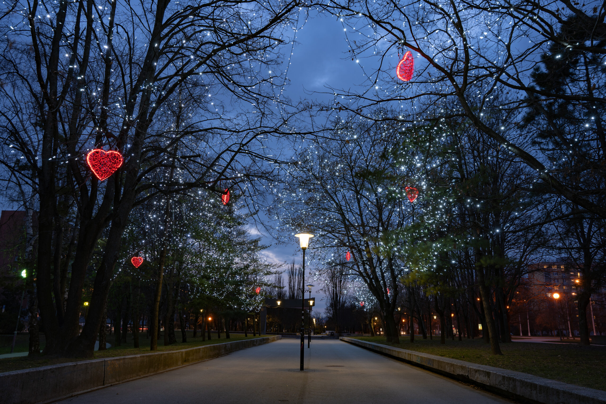 For this Valentine’s Day, the Ružinov park in Bratislava has been adorned with beautiful red hearts , hanging from trees, surrounded by glittering garlands . The mayor of the city has proposed a participatory initiative to determine whether these decorations should become an annual tradition. The magic of lights is universally appreciated, so every year you can find these luminous heart-shaped decorations in Bratislava’s Ružinov Park.