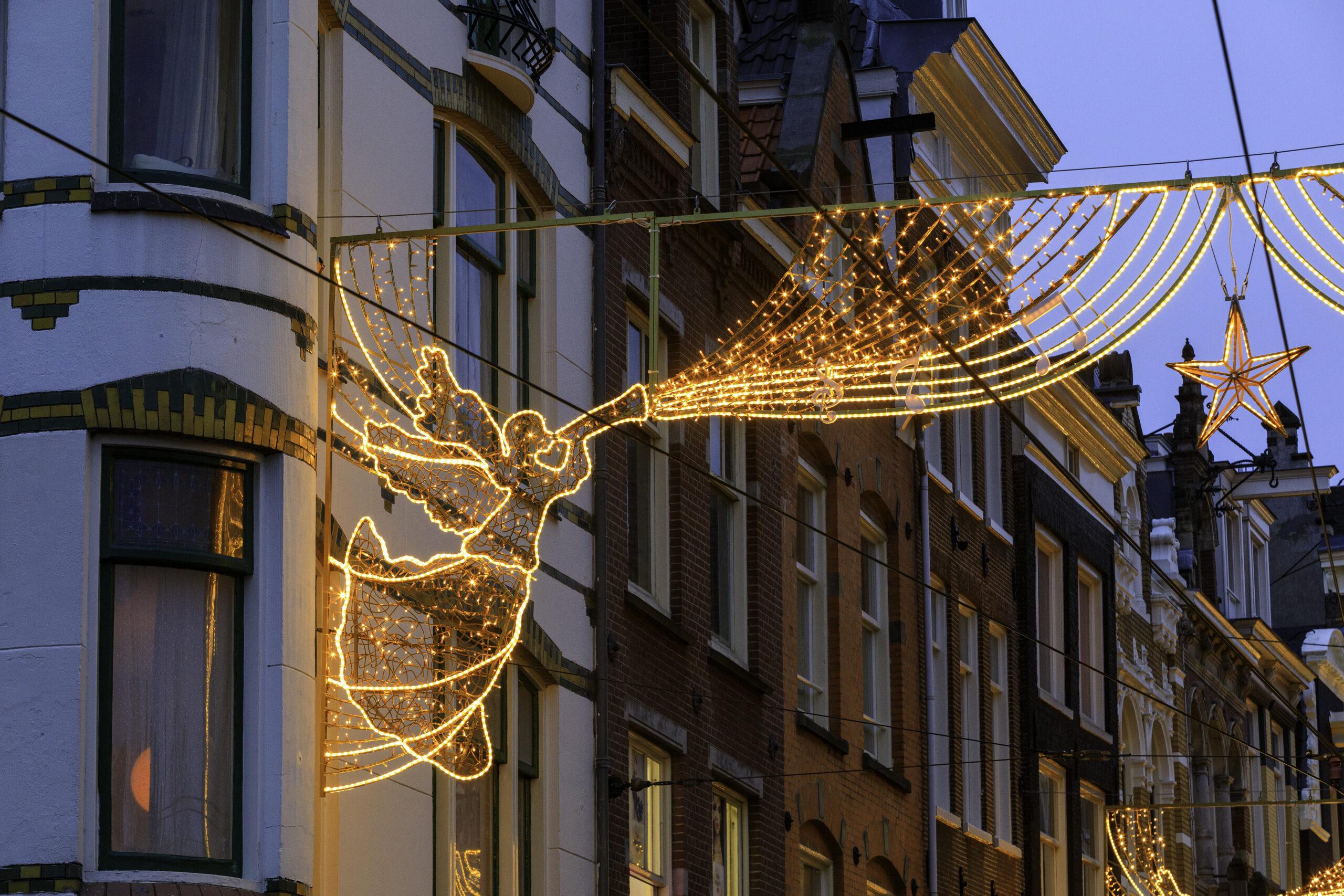 For over 15 years, Utrechtsestraat in Amsterdam has been illuminated with stunning displays. This year, the angel symbol takes center stage, perfectly complementing the street’s unique atmosphere. Representing protection, peace, and light, angels are a universal symbol of inclusivity, resonating with Amsterdam’s multicultural spirit.