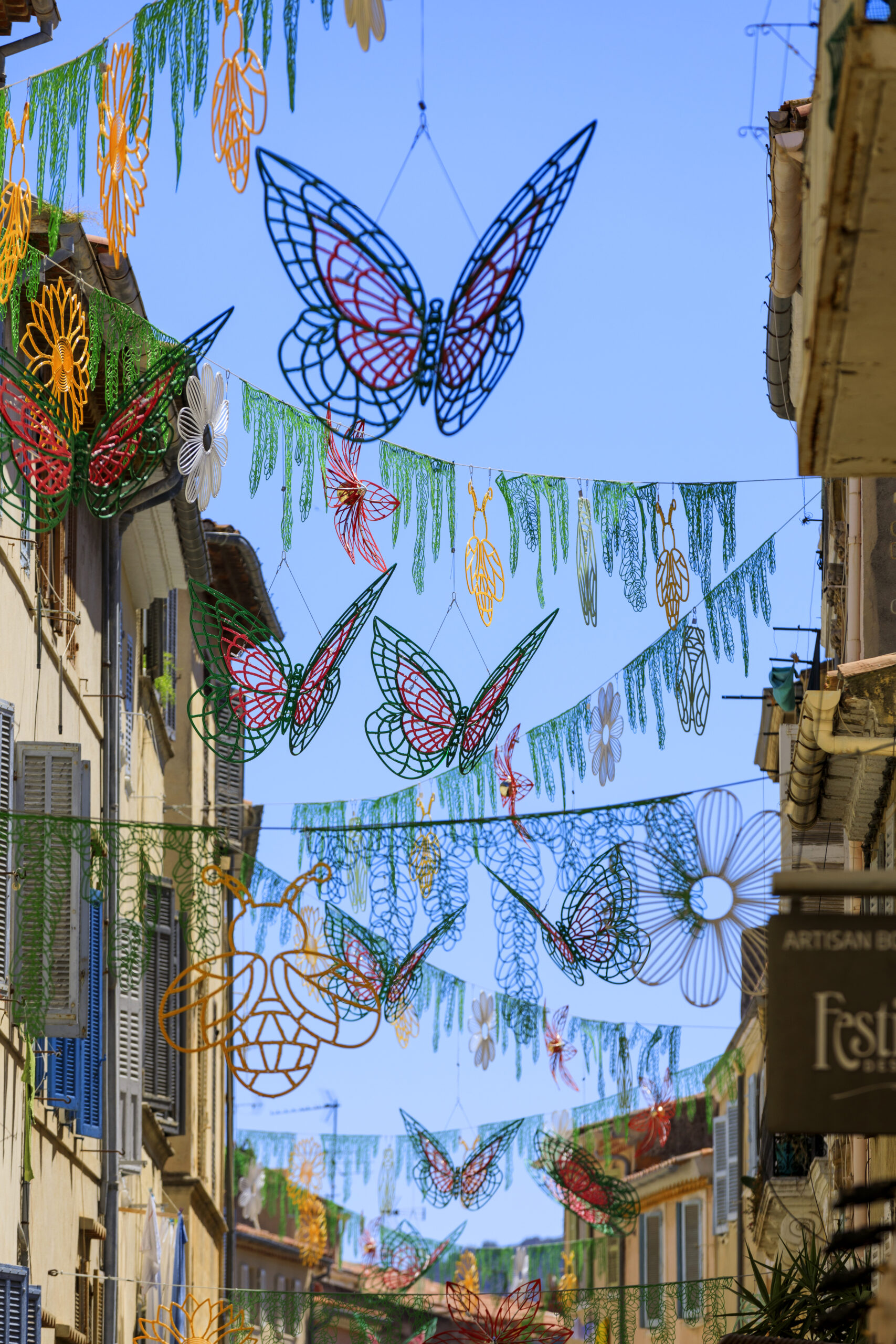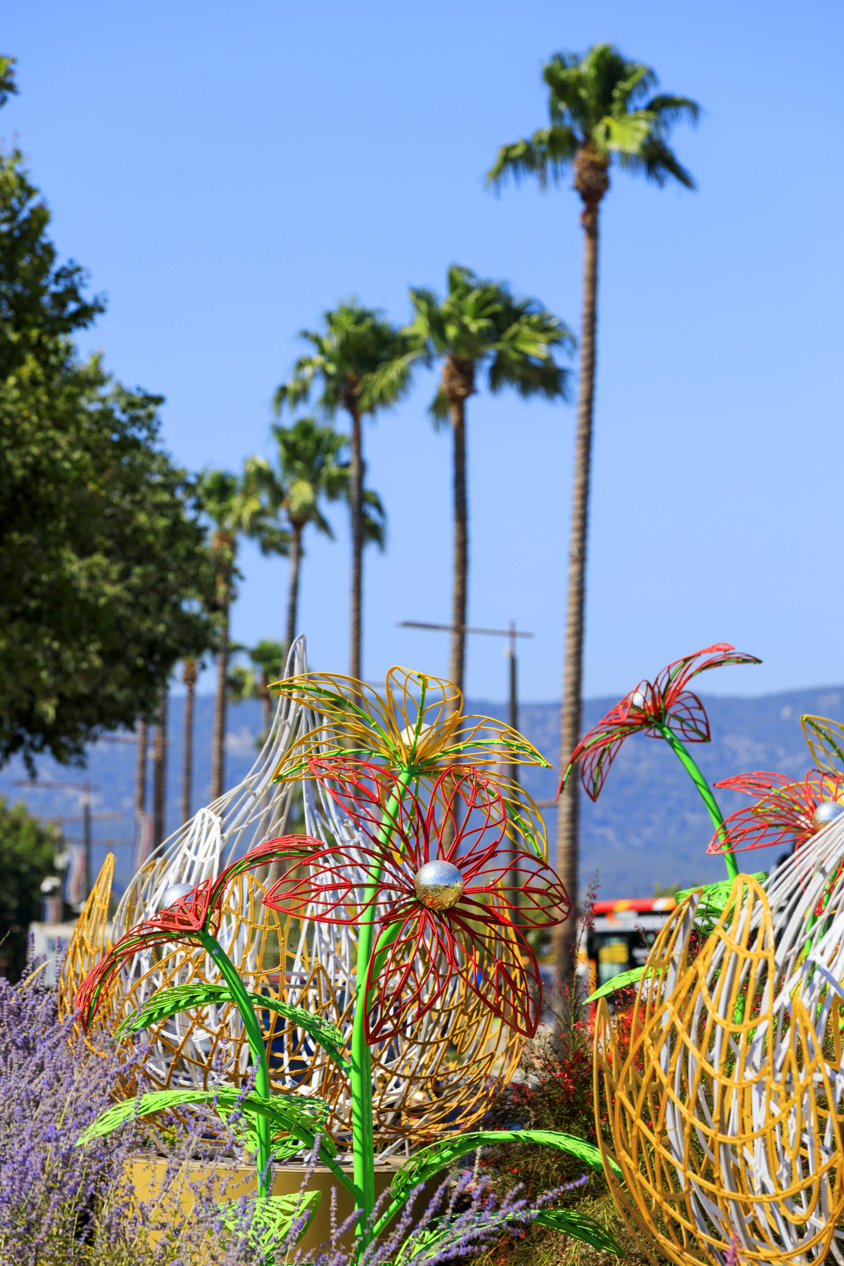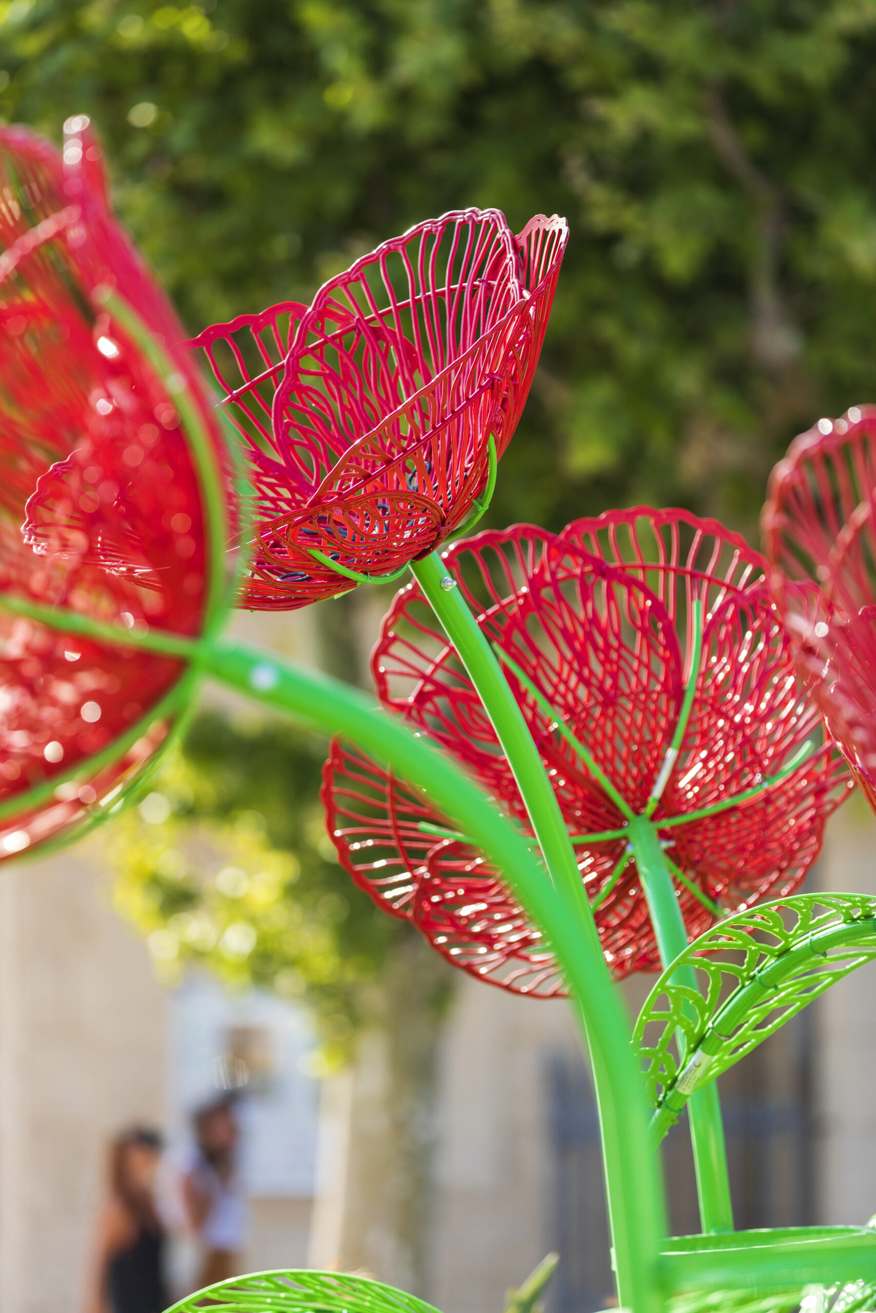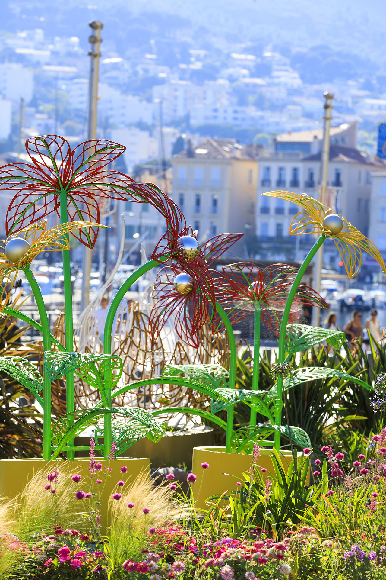 Colourful and vibrant bouquets of flowers decorate city squares and the entrances to shopping centres! These installations are available in light or decorative version, as here at La Ciotat. Since 2019, our teams have been designing original sets made from recycled plastic bottles. Here, the structures are decorated with printed motifs thanks to Recyprint, an eco-friendly and recyclable material. All installed on a recycled aluminum structure shaped in our ironwork workshops in Apt.
