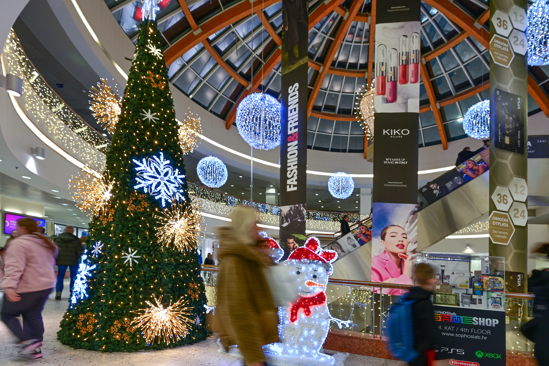 Tower Center Rijeka reflects Rijeka’s specific vibe. Its shopping and entertainment gallery extends to five floors with the recognizable and most beautiful glass dome on the top, which requires bold and elegant decorations, to surprise and intrigue from all the levels. Generous spread of warm white throughout the centre most certainly does its part in creating a festive atmosphere.