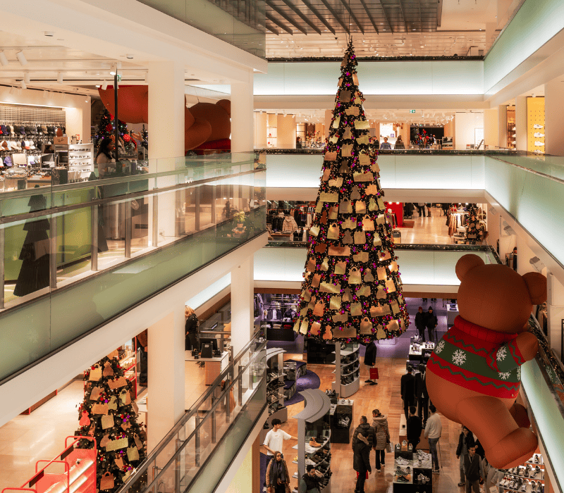 Ook binnen draagt kerstdecoratie bij aan de totaalbeleving. Grote decoratieve objecten en verlichte kerstbomen creëren een warme, uitnodigende sfeer voor bezoekers en maken van het winkelbezoek een complete ervaring. Dit samenspel tussen buiten- en binnenverlichting laat zien hoe kerstdecoratie kan bijdragen aan merkbeleving en bezoekersaantallen.