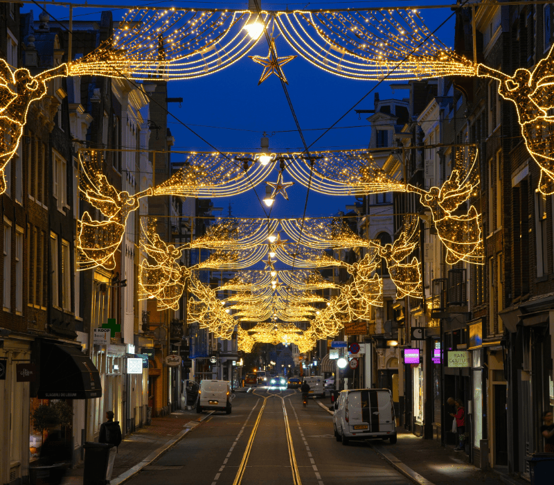 Straat sfeerverlichting speelt een belangrijke rol in de uitstraling van de Utrechtsestraat tijdens de feestdagen en vormt de basis van dit lichtconcept. Voor dit project ontwierp Avontuur-BlachereNL een sfeervolle engelenoverspanning als verbindend symbool binnen de straatverlichting.
